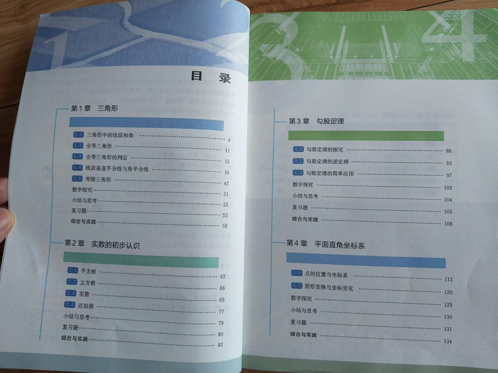 可见,苏教版数学八年级上册(2025秋新版)共5章,第一章分5节!那么旧版呢?我再看下旧版的目录: